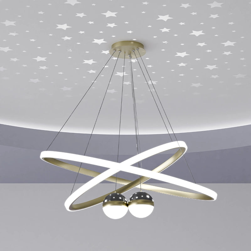 ЛЕД Висящ полилей 2 кръга (40+60см) и 2 топки